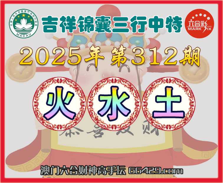 312期:〖吉祥锦囊〗 🎖️三行中特🎖️【火..土】开:水14