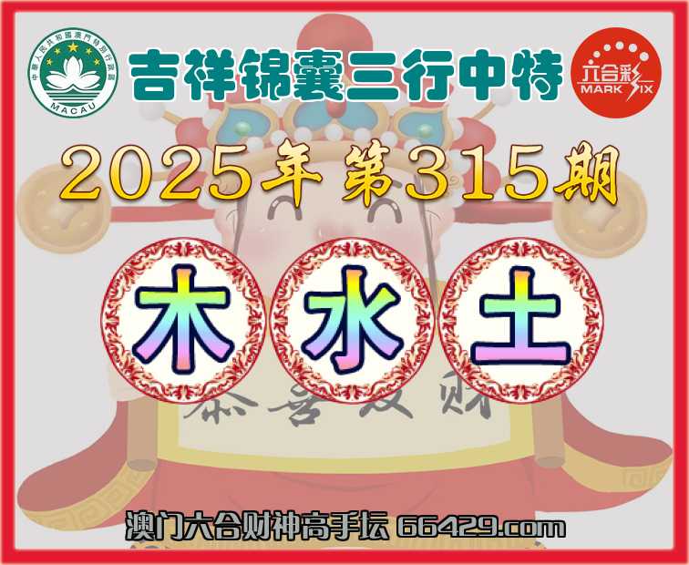 315期:〖吉祥锦囊〗 🎖️三行中特🎖️【木.水.土】开:金04