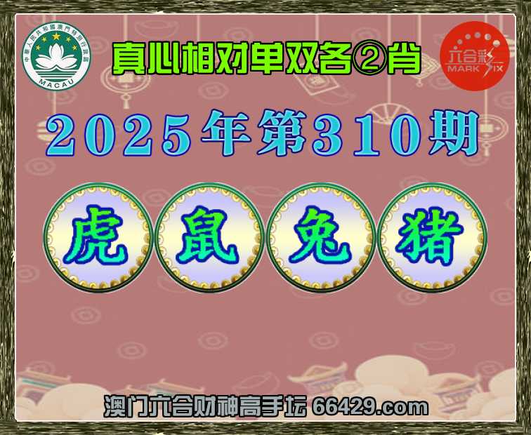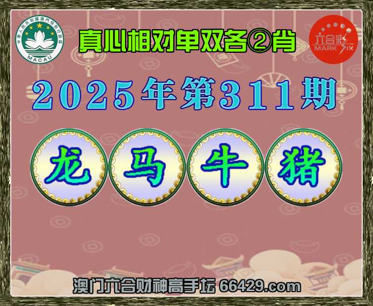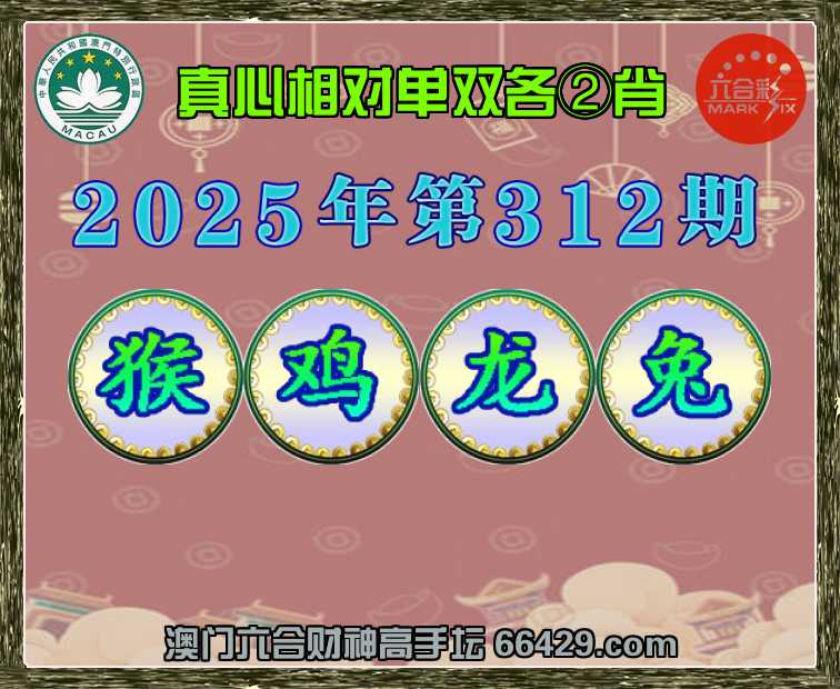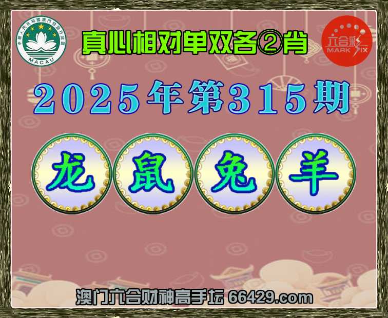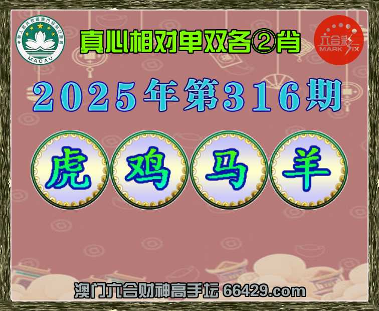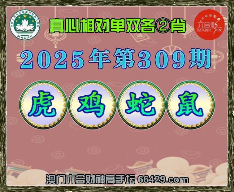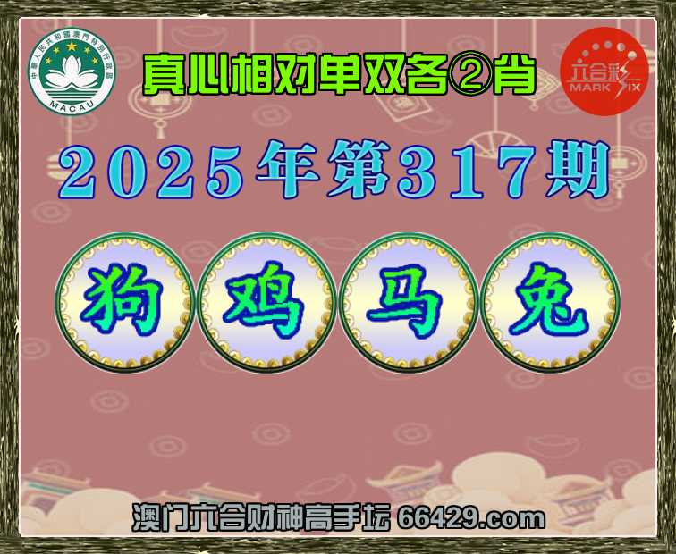 317期:澳门财神【单双各②肖】真心相对→发表