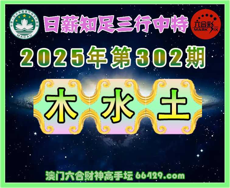 302期:『日薪知足』 ⛩️三行中特⛩️【木..土】开:水22