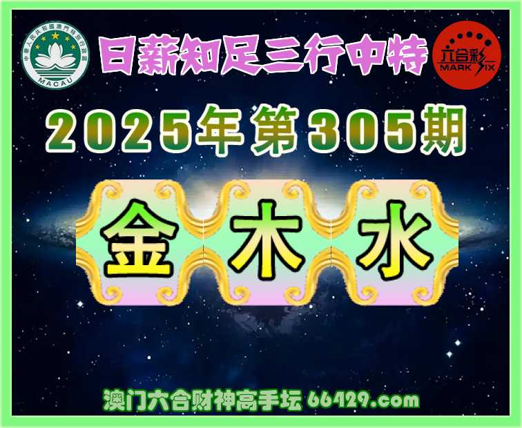 305期:『日薪知足』 ⛩️三行中特⛩️【.木.水】开:金42