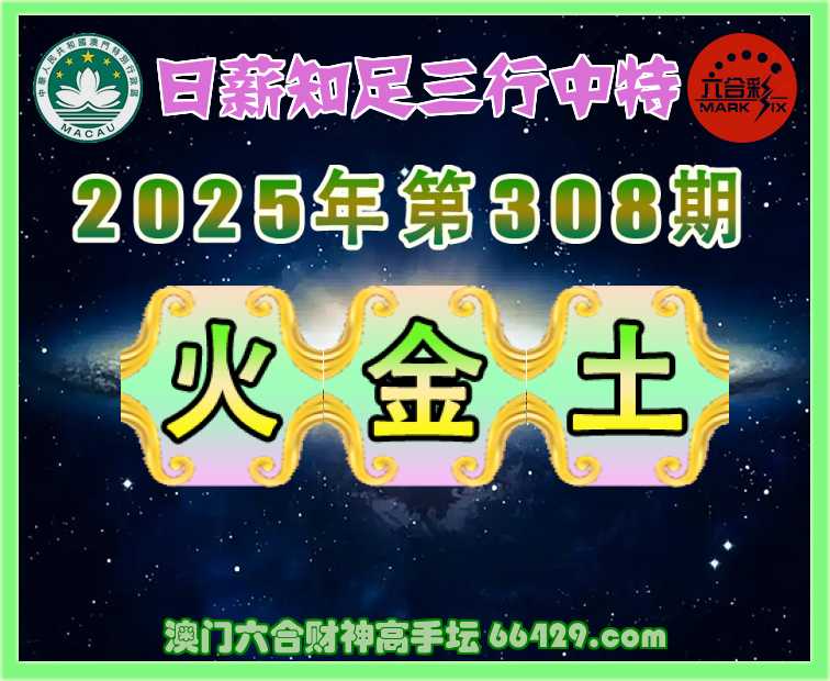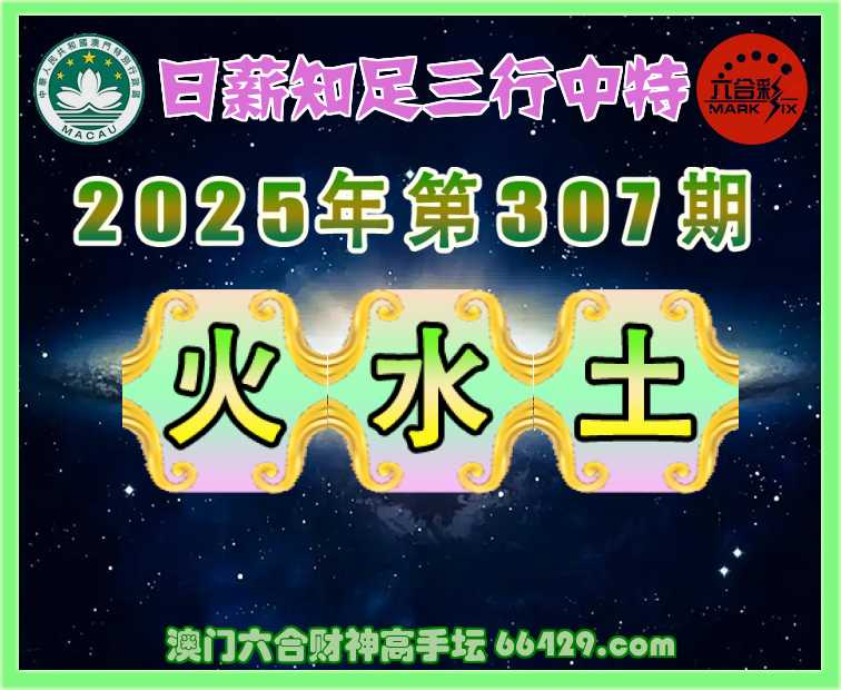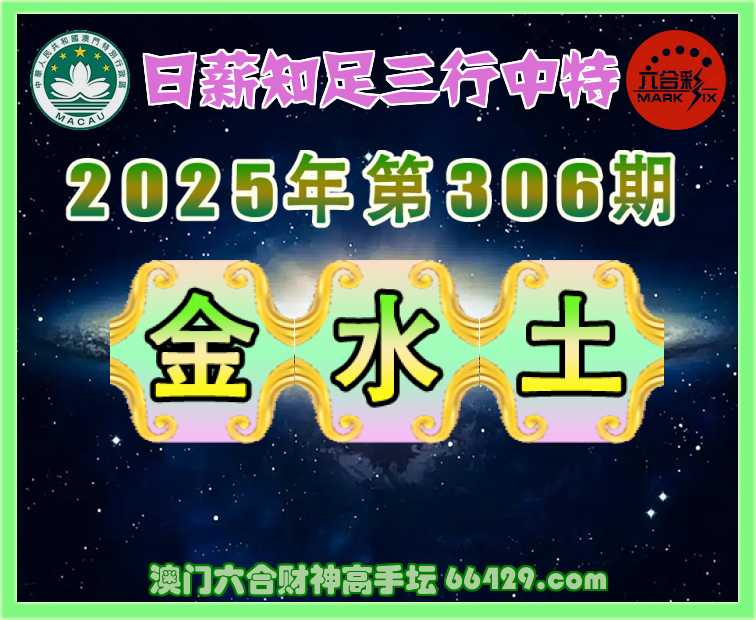 306期:『日薪知足』 ⛩️三行中特⛩️【金.水.土】开:火17