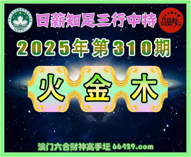 310期:『日薪知足』 ⛩️三行中特⛩️【火.金.】开:木16