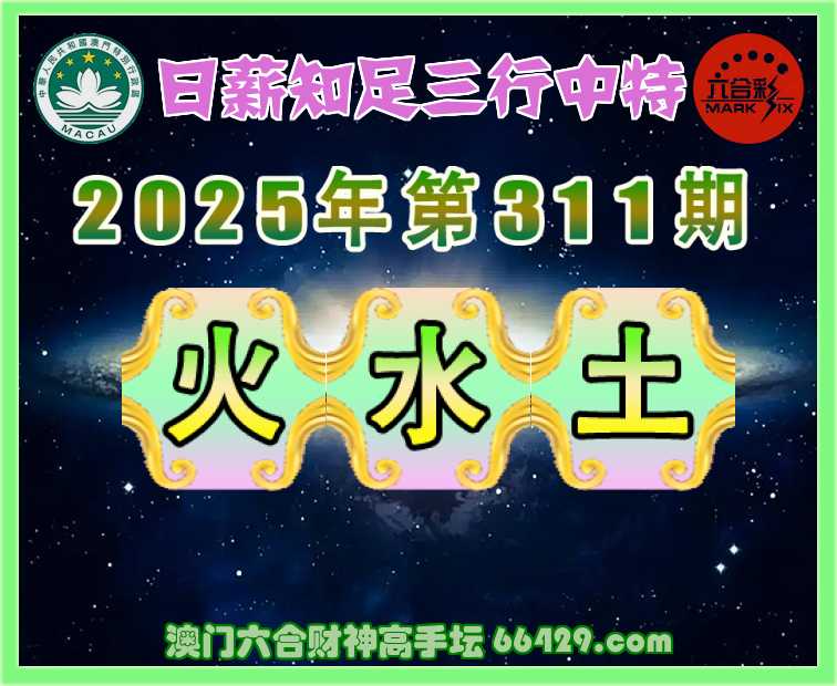311期:『日薪知足』 ⛩️三行中特⛩️【火.水.土】开:木37
