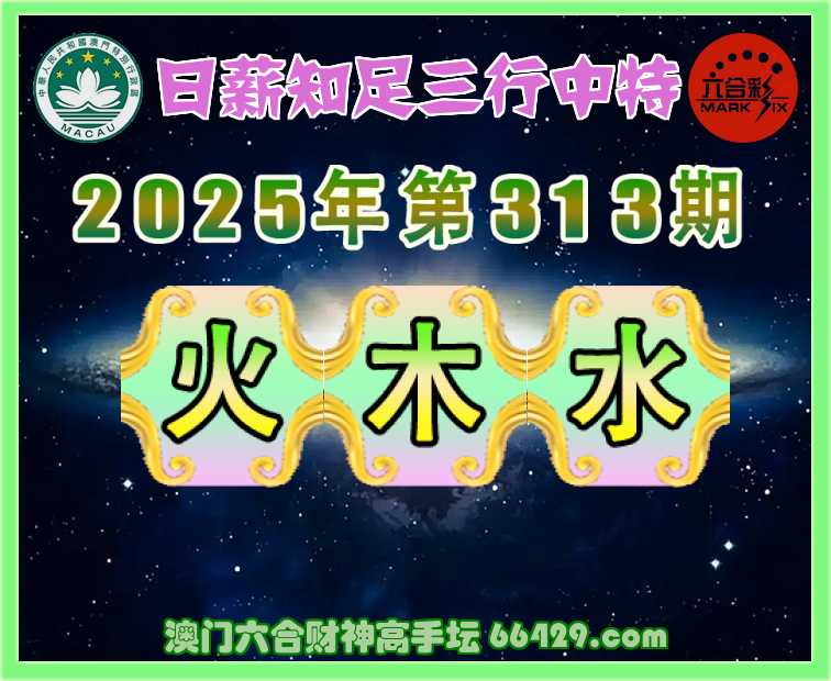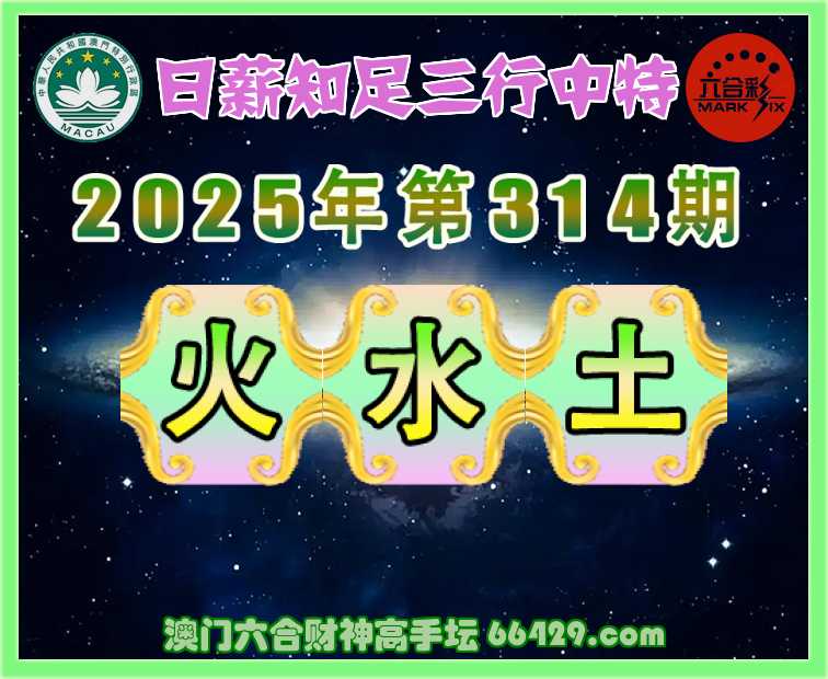 314期:『日薪知足』 ⛩️三行中特⛩️【火.水.土】开:木23